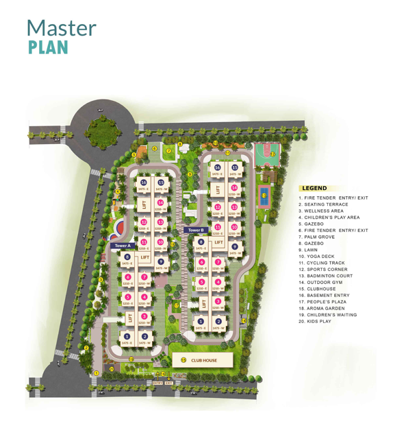 2 Towers spanning G+14 floors, set amidst 72% open area across 4.11 acres
